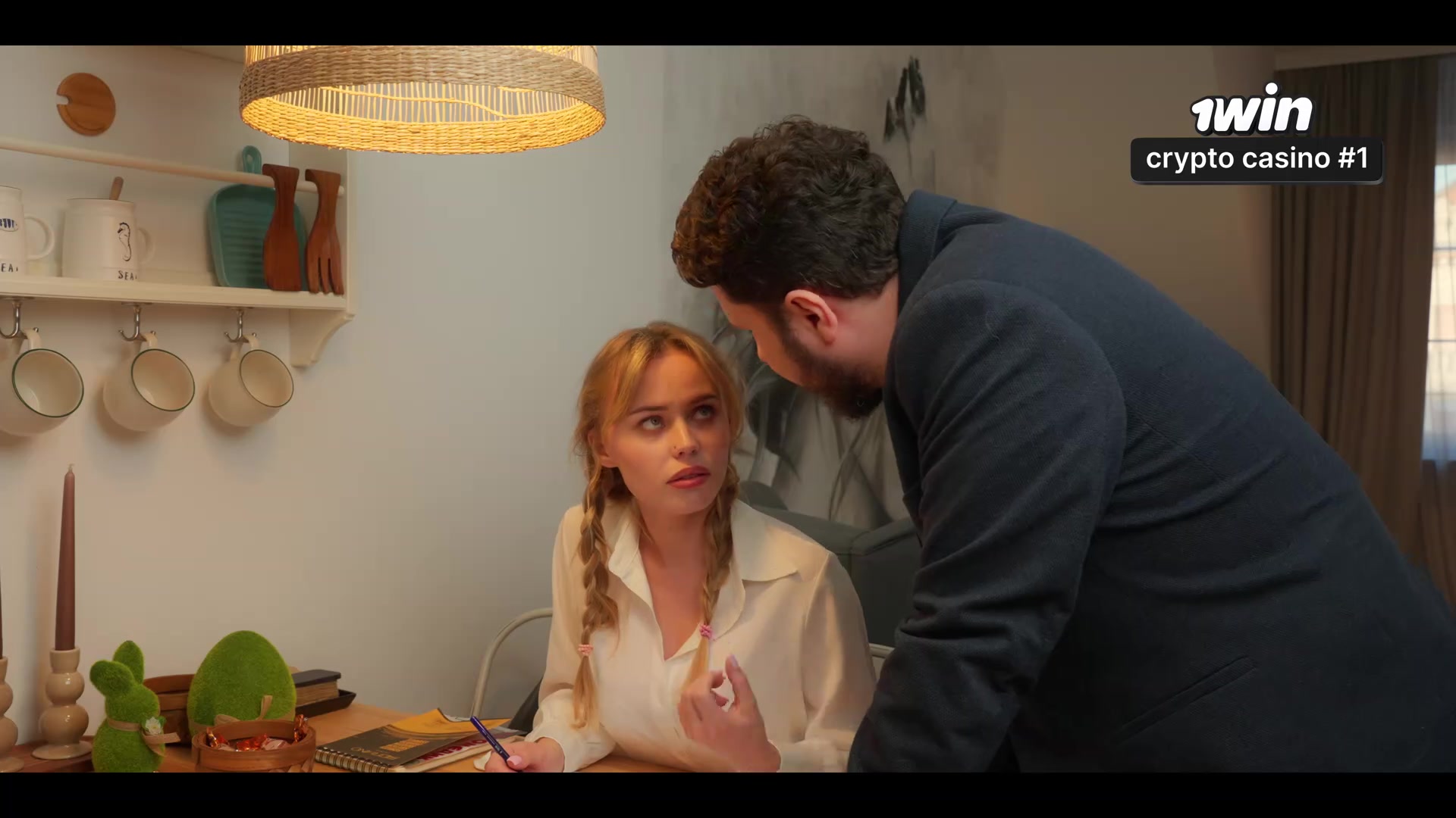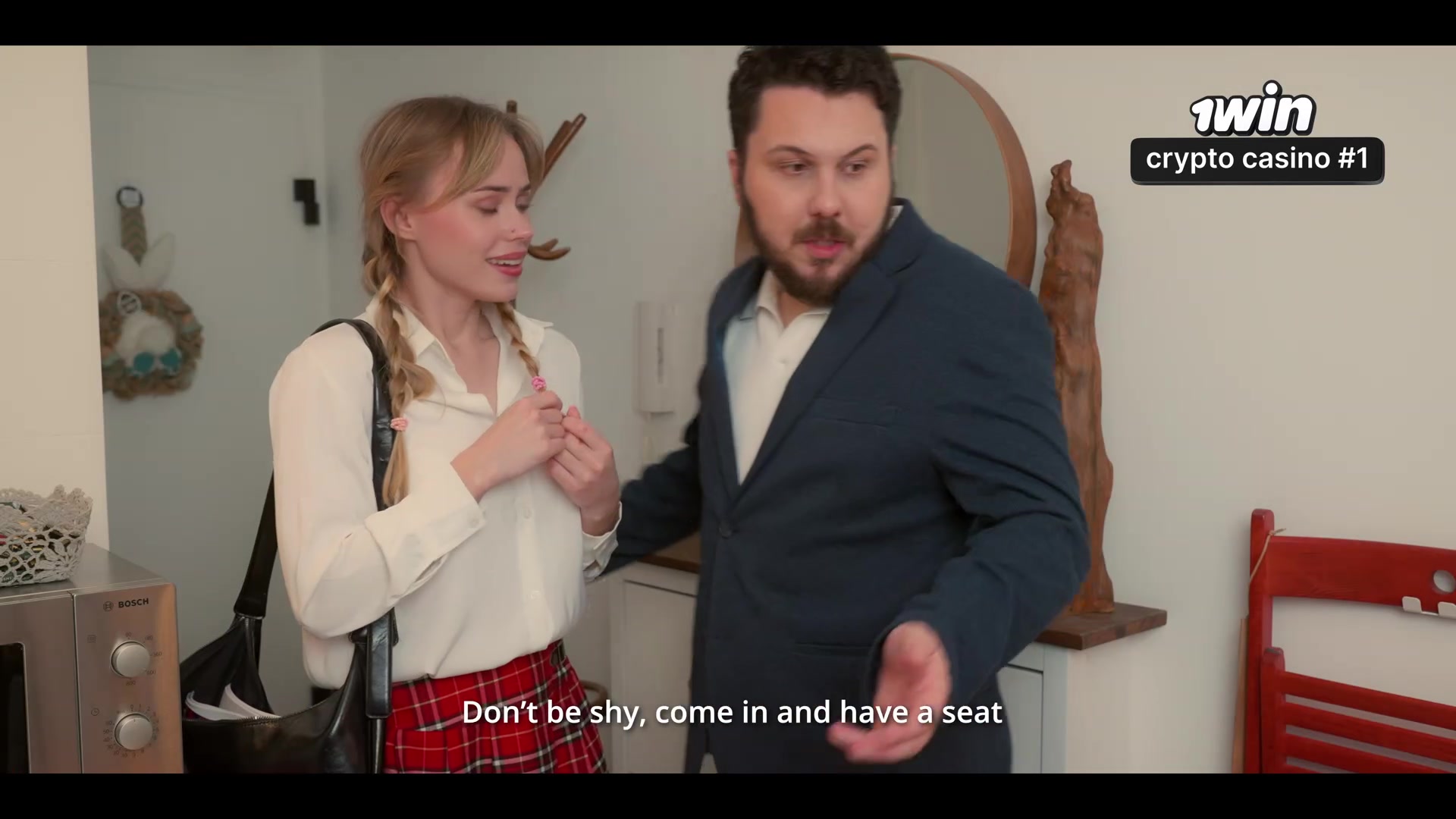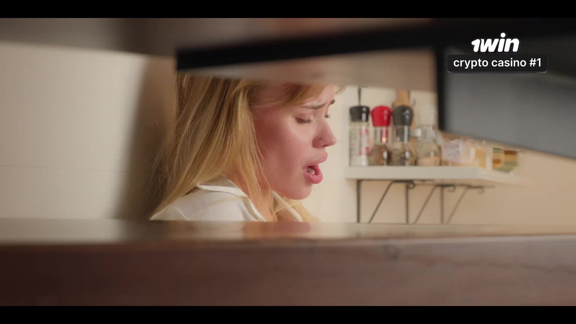 Horny brunette chick seduced a guy in the kitchen